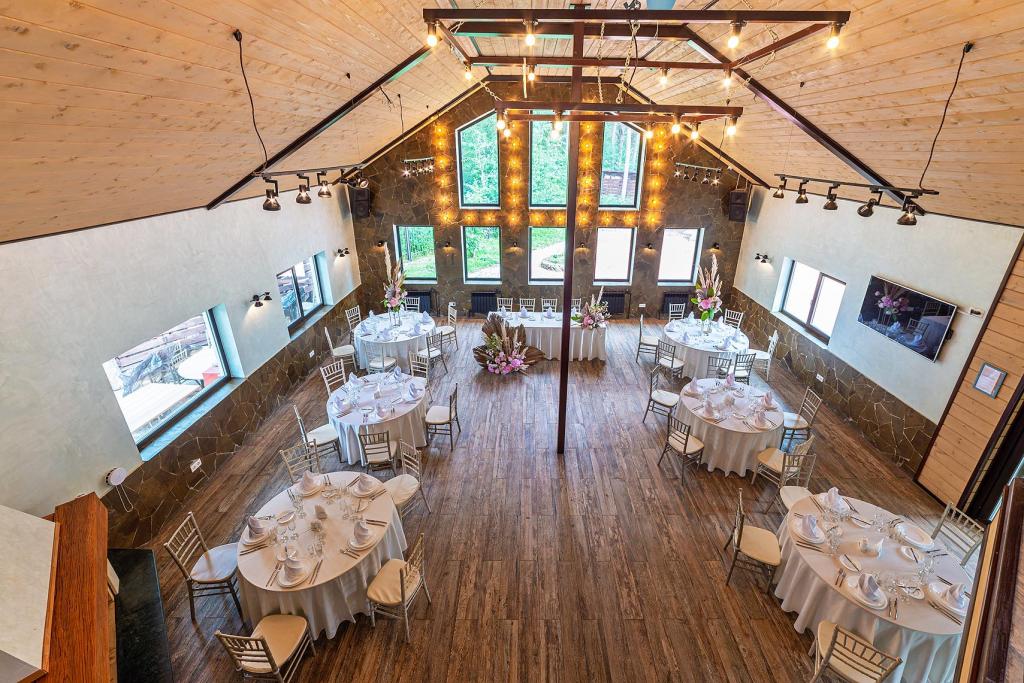 : Двухэтажный зал, вместимость первого этажа 80 человек, второго этажа — 20 человек.
