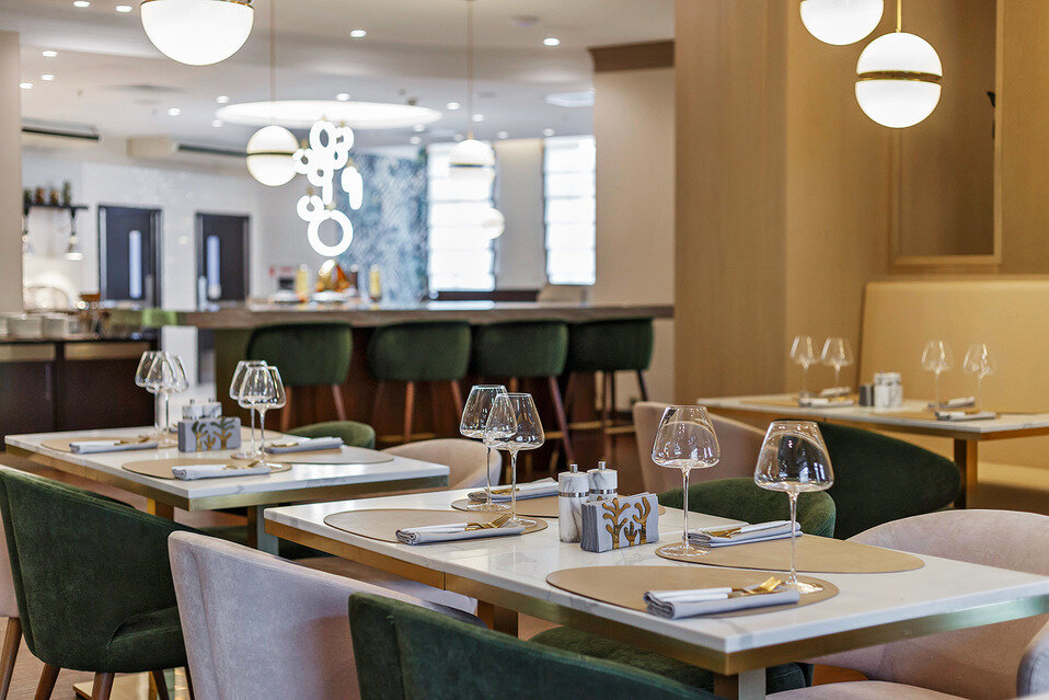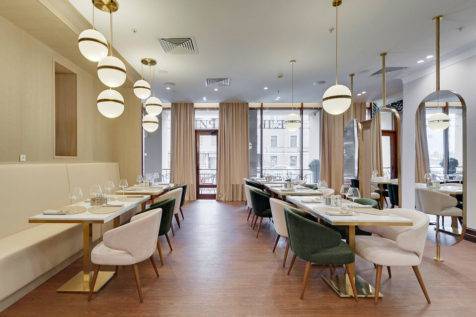 Элегантный ресторан европейской кухни при четырехзвездочном отеле.